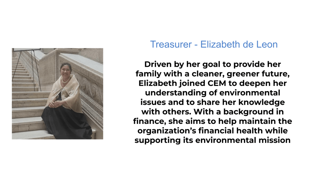 Established on World Environment Day on June 5, 2017, CEM is a registered non-profit organization that aims to promote knowledge and action on environmental and sustainability issues within the Filipino community and the broader society through advocacy, partnerships and collaboration.