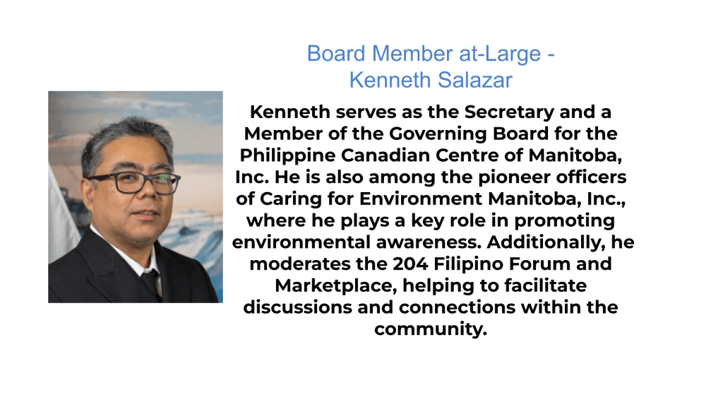 Board Members at Large: Mariciel Nuyda, DEd. and Kenneth Salazar