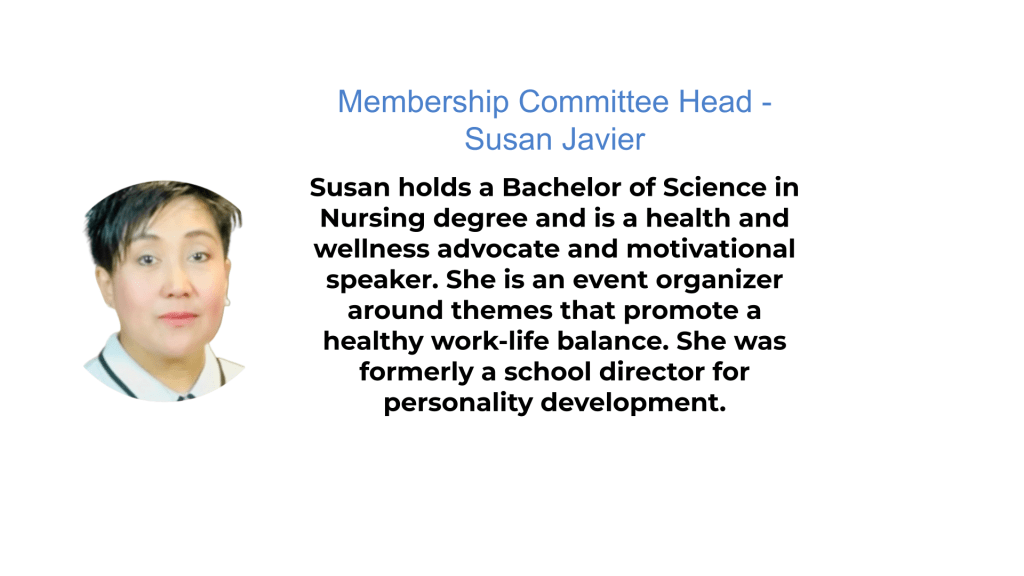 Head, Membership Committee: Susan Javier